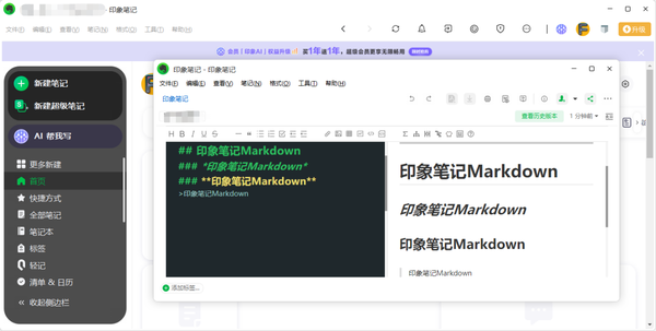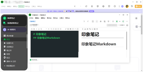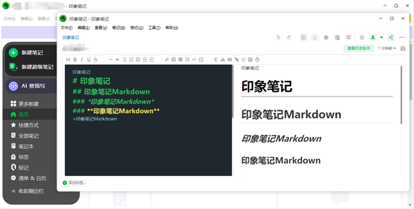 印象笔记Markdown提供了独立的新建入口,为深度Markdown用户提供更好的效率体验。