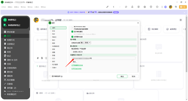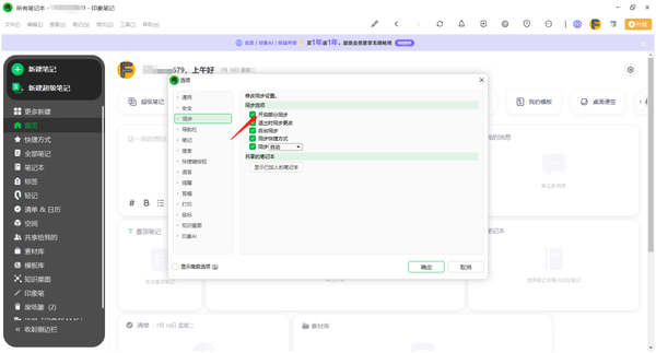 点击菜单栏中的【工具】功能,选择【选项】功能。然后选择【同步】功能,勾选界面右侧的【开启部分同步】选项,最后点击【确认】,最后再次进行笔记同步,一般就可以解决问题了。