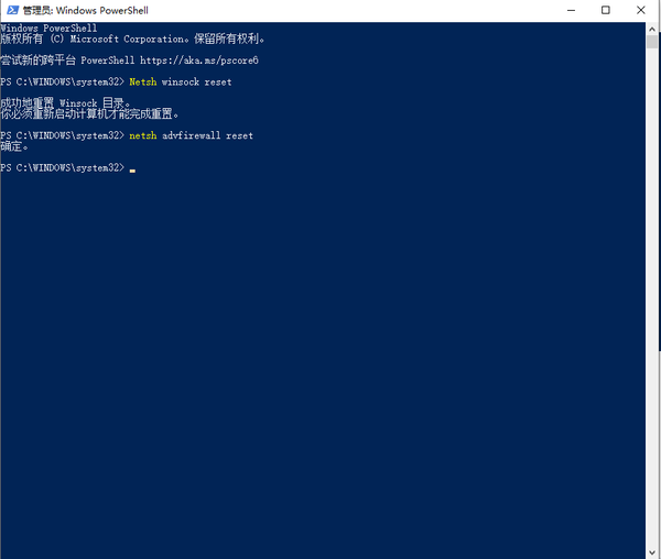 6、接着在命令提示窗口中再次输入【netsh advfirewall reset】命令点击回车。