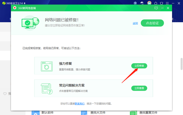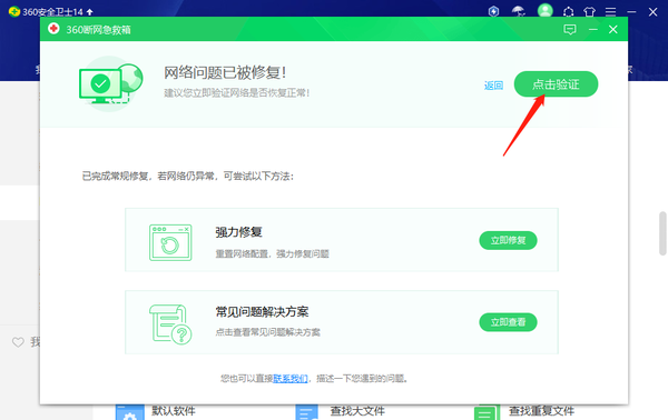 4、最后,待软件修复完毕之后,点击【立即验证】,查看系统是否可以正常连接到网络。