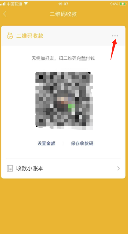 第四步:进入到二维码收款界面后,点击右上角三个点的选项。