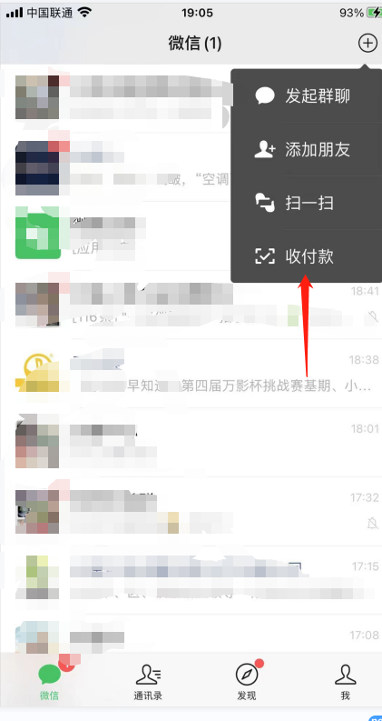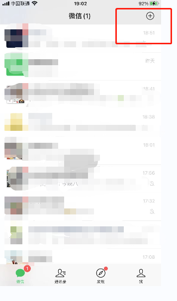 首先第一步:打开微信进入主界面后,点击上方的+号按钮
