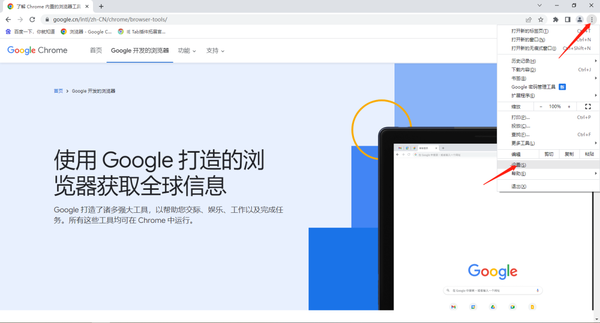 1、打开谷歌浏览器,点击右上角【自定义及控制】-【设置】。