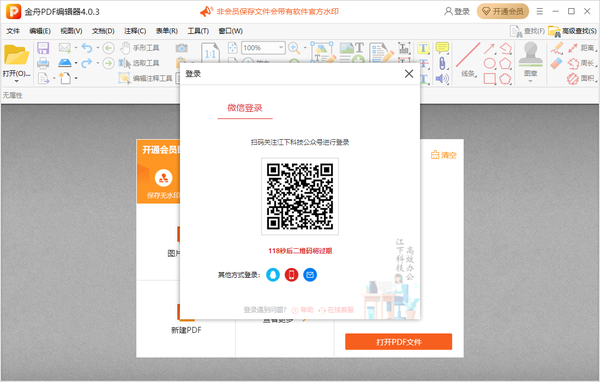 1、打开金舟PDF编辑器,点击右上角【登录】注册软件会员。