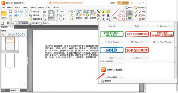 经过财神爷站小编查阅资料及测试软件后发现,金舟PDF编辑器可以给PDF文件进行盖章。