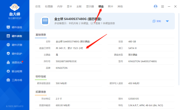 我们可以通过查看此类信息,对比当前硬件的健康状况,或者直接使用鲁大师硬件体检,检测硬件状况,确保硬件正常使用。