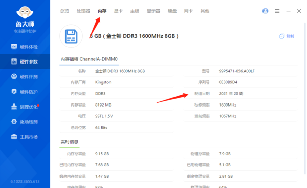 虽然鲁大师不能查看电脑硬件初次使用的日期,但是我们可以利用鲁大师查看某些硬件的发布日期、制造日期、固件程序日期等等。
