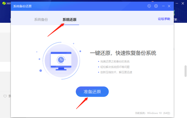 1、在系统备份还原界面中选择【系统还原】,点击【开始还原】。