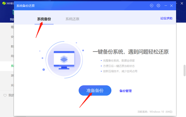 2、在系统备份还原界面中选择【系统备份】,然后点击【准备备份】。