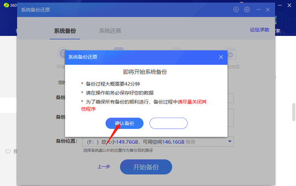 5、点击提示窗口中的【确认备份】,最后就等待备份文件生成,即可完成备份。