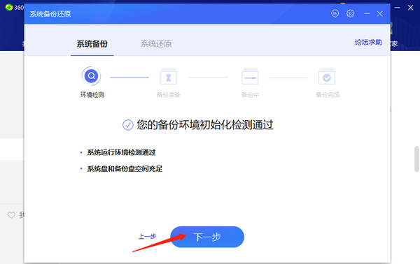 3、等待工具进行备份环境初始化检测,完成后点击【下一步】。
