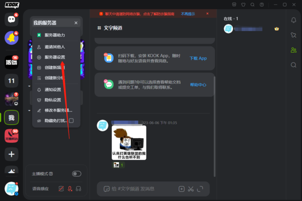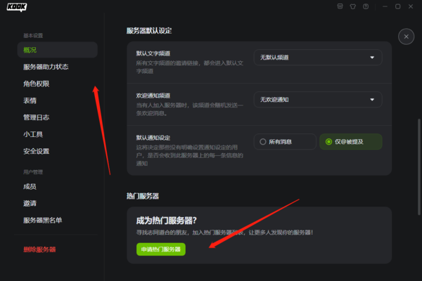 如果想要申请KOOK服务器上热门,我们要进行以下操作: