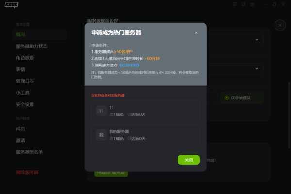根据如图所示内容可以看到,想要申请成为热门服务器,需要具备以下条件: