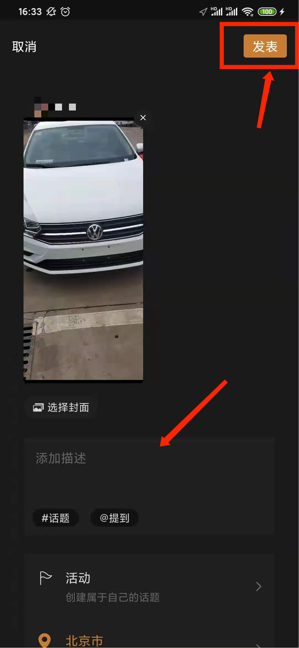 第五步,选择好视频并编辑完成后点击下一步添加描述等就可以选择发表了。