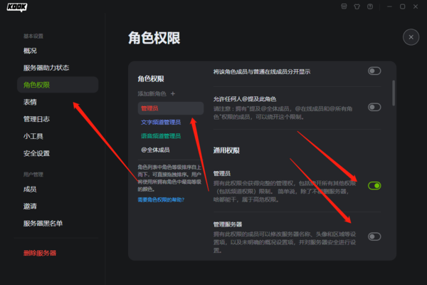 管理员用来帮助我们管制成员,维护服务器秩序,那么我们作为服务器创建者也要监督管理员的操作。