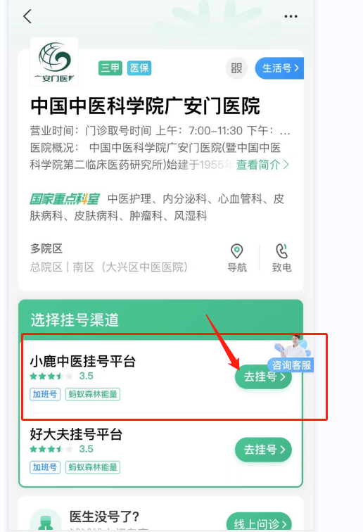 第六步:进入医院挂号平台,选择其中一个,点击立即预约。