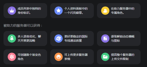 服务器助力即【为你喜欢的服务器提供助力】,通过【购买助力包】的形式,我们可以购买助力包,等到需要用的时候再用,每个助力包的生效时间为30天,至多可以解锁6个服务器等级,随着服务器等级提升,服务器内全体成员可享受更多权益。