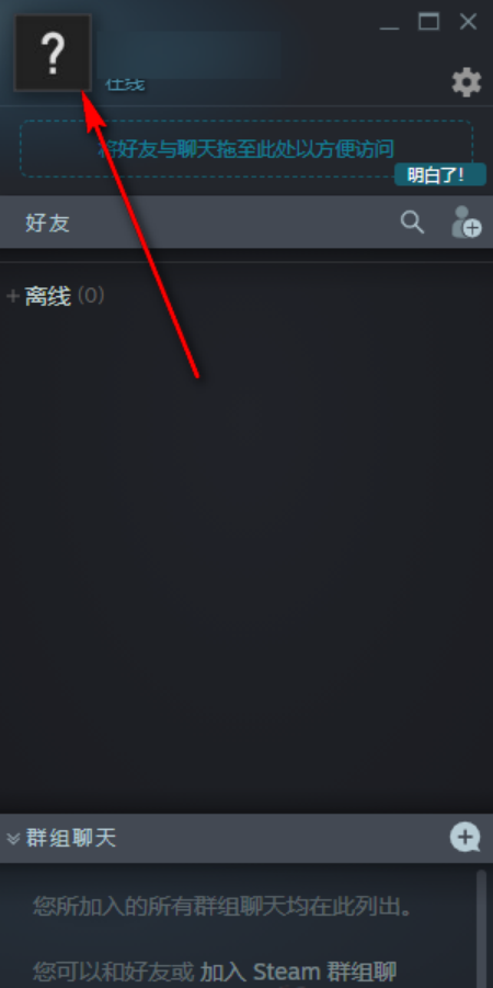 一、电脑上运行steam平台,登陆账户以后点击左上角的个人头像,进入到“个人主页”的位置。