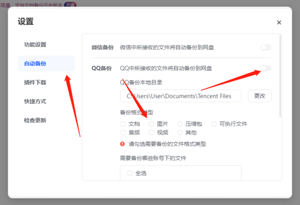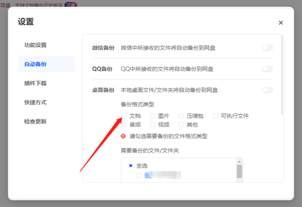 答案是可以,使用夸克网盘自动备份功能时,我们可以单独选择某种文件类型进行备份,方法如下: