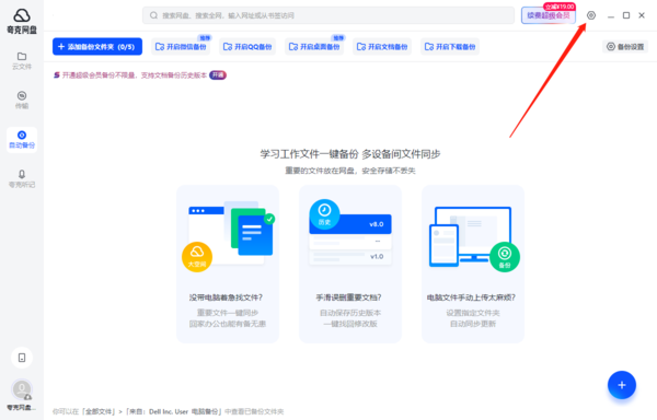 1、进入夸克网盘,在主界面右上角中,找到【齿轮】设置按钮;