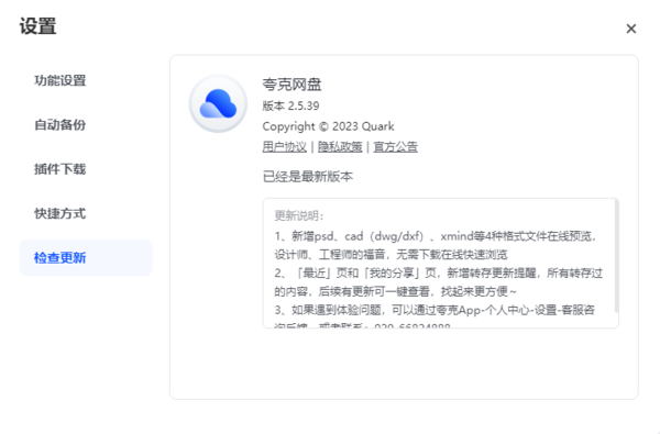 夸克网盘是现在人们常用的云存储平台,我们可以通过它实现数据的备份、传输,且夸克网盘紧跟大众需求,一直都在完善新功能,以解决用户问题,所以我们要保持夸克网盘的版本是最新,那么如何查看夸克网盘当前的版本呢,今天小编就来给大家讲解一下。