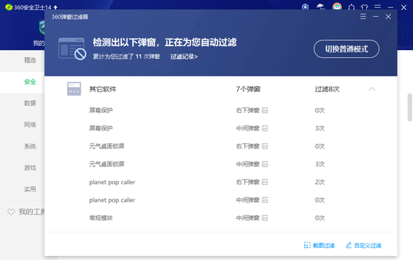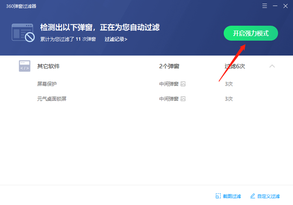 5、开启强力模式后,360安全卫士会自动将低干扰的弹窗程序也过滤掉。