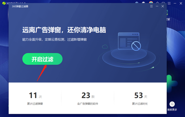 3、打开弹窗过滤界面后,选择【开启过滤】。