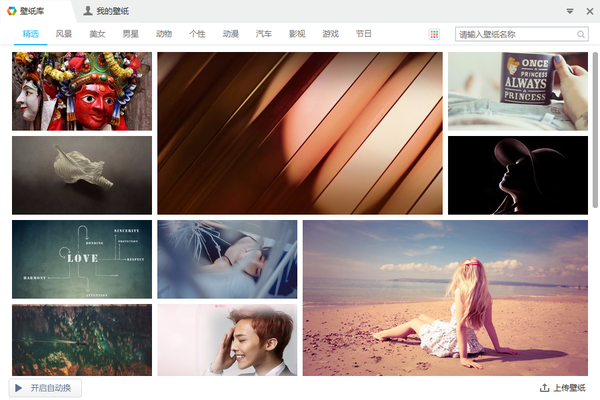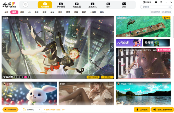拥有海量超清无水印壁纸,包括静态壁纸和动态壁纸,还有壁纸自动切换、壁纸编辑器、鼠标轨迹、桌面美化部件、一键整理桌面等功能,可以轻松地自定义我们的桌面。