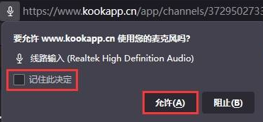 如果设备没有出现问题,出现没有声音的状况是因为KOOK网页版没有开启麦克风访问权限。