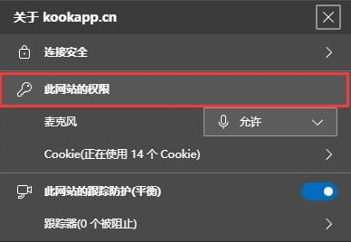 点击KOOK网页版中网址处的【锁】图标,在列表选项中可以看到【此网站的权限】按钮;
