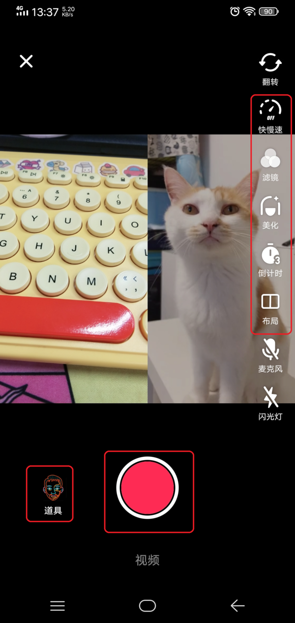 第三步,然后软件就进入到了合拍视频的界面当中了,此时我们还可以设置滤镜、布局、选择道具等。