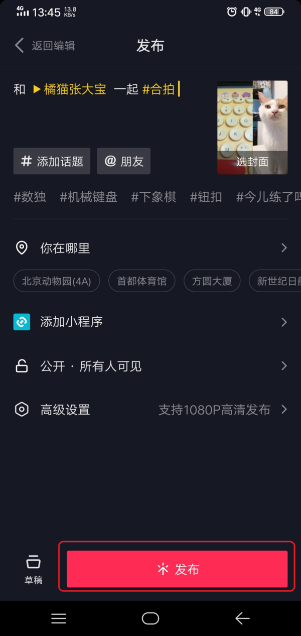 第六步,最后我们就可以将合拍好的视频进行发布了。