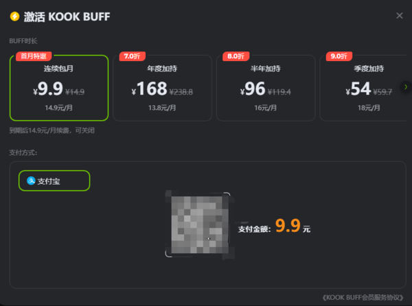 可以看到,目前连续包月的首月价格为9.9元,包月、包季、包年都有对应的优惠,大家可以根据自身需要灵活选择。