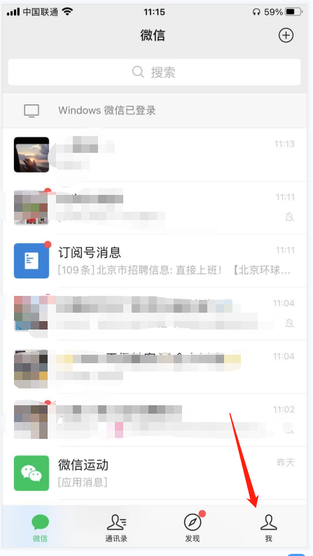 首先第一步打开微信,进入主界面找到我,然后点击它。