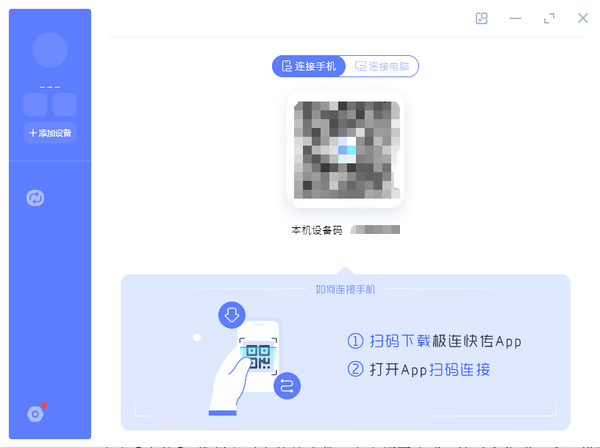 2、进入360极连快传界面后,使用【极连快传】扫描二维码或者识别码进行连接。