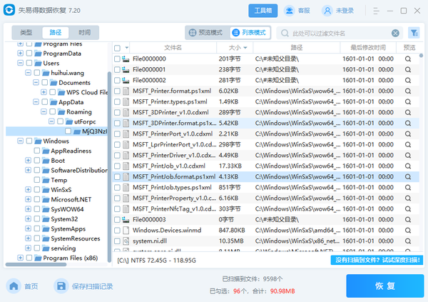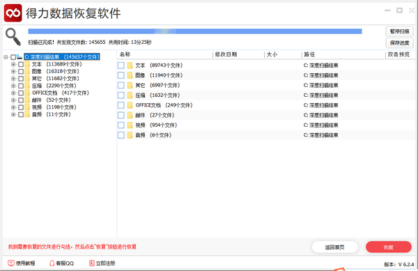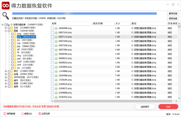 得力数据恢复软件:软件扫描结束后,我们可以直接在界面查找删除的文件,这苦啊软件恢复出来的数据有很多不相关的,需要我们仔细查找,比较耗费时间。