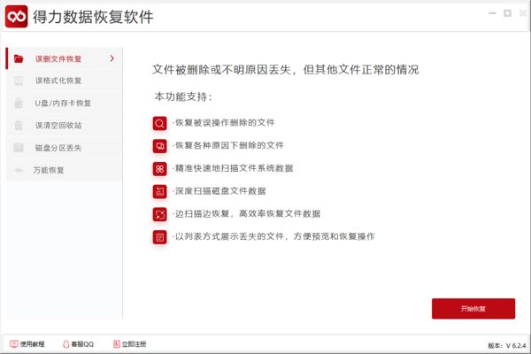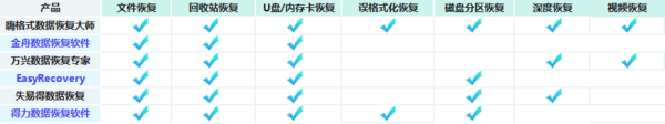 参与评测的6款数据恢复软件在功能方面都比较全面,基础的文件恢复、U盘/内存卡恢复以及回收站恢复功能均完整支持,基本能够满足大多数情况下的文件恢复需求。