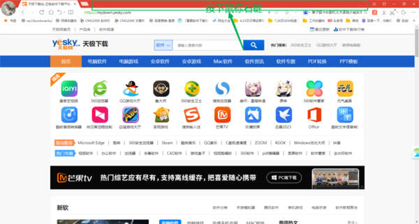 1、将电脑端的搜狗浏览器升级至12最新版本,然后启动浏览器,将鼠标的光标放在浏览器顶部的空白区域,然后按下鼠标右键。