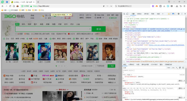 360安全浏览器开发人员界面是用来调试和查看页面元素的。