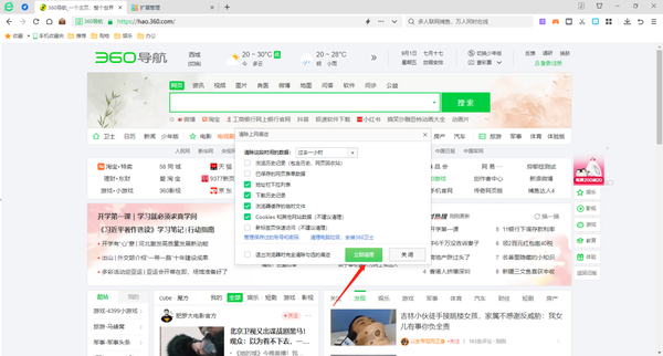 4、清除浏览器缓存和历史记录:浏览器缓存和历史记录过多也会导致浏览器占用过多的CPU资源,可以定期清理这些数据。点击360安全浏览器右上角【显示浏览器工具及常用设置选项】,选择【更多工具】,在弹出来的下拉菜单中点击【清除上网痕迹】。