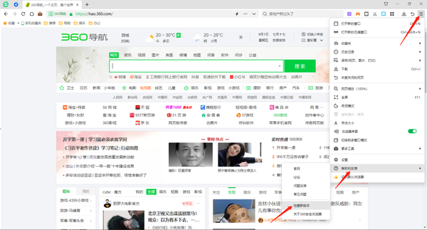 1、更新版本:首先360安全浏览器CPU占用率太高很有可能是因为版本问题,因为部分版本浏览器可能存在BUG导致资源占用异常高,我们可以通过浏览器版本升级来解决这种问题,点击360安全浏览器右上角【显示浏览器工具及常用设置选项】,选择【帮助和反馈】,在弹出来的下拉菜单中点击【检查新版本】进行更新。