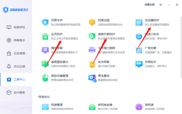 很多朋友在使用电脑的过程中,会发现自己的浏览器主页被莫名其妙的改成了一些自己不常用的网页,主页刚修改没几天又被篡改,这个时候我们可以借助2345安全卫士来保护我们的电脑避免主页、搜索引擎被篡改,而且2345安全卫士还可以深度清理电脑垃圾,提升电脑运行速度,是一款非常专业全面的软件了,不过还是有朋友不清楚2345安全卫士如何锁定浏览器主页。接下来小编就给大家介绍一下吧。