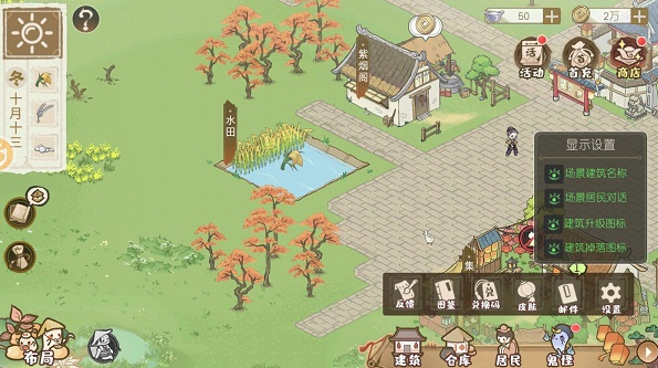 玩家们在刚进入游戏后,会获得一个小田园和一些小村民,玩家们需要不断经营它,田园本身分为很多不同的区域,这些区域所规划的东西都是不一样的,比如鱼池、田地、圈养场、果林、房屋、庭院等等,不过大部分东西都是要等后期才可以开启的,一开始只会出现小规模的地皮,并且这个地皮还十分荒凉,大家需要利用这个地皮来慢慢发展,这里小伙伴们可以选择建造一些最基本的农业建筑,例如小菜园、水池等等,然后在里面种植一些蔬菜、饲养一些鱼类。