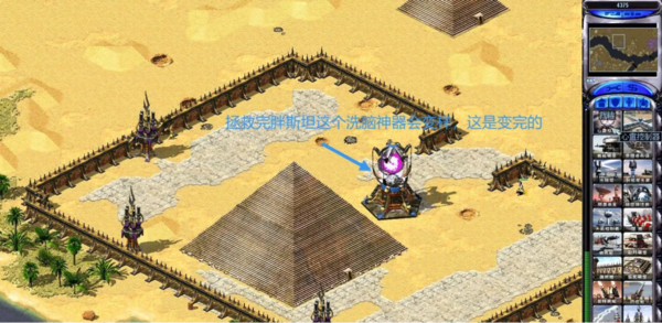 4,在这个地图中还需要把金字塔占领,当我们派兵过去的时候会出现小狗进行反抗,但是这属于正常现象。