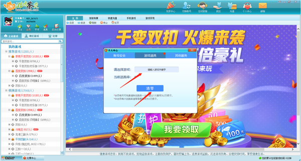 1、首先启动电脑端的茶苑游戏大厅,点击上方的【个人中心】。