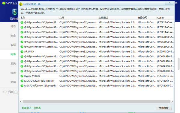360安全卫士是一款非常全能的安全防护软件,不仅具备木马专杀、病毒查杀、电脑加速、垃圾清理等功能,能有效防止个人数据和隐私被木马窃取,还可以修复网络以及LSP。打开360安全卫士,在上方选择【功能大全】,进入到功能列表界面后,在左侧点击【网络】,然后在右侧的功能列表中选择【LSP修复】即可。