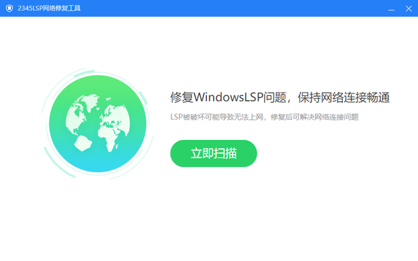2345安全卫士采用全新杀毒引擎、海量安全云库、搭载小红伞引擎,可以深度清理电脑垃圾,同时也有LSP修复工具可以快速修复LSP问题,保证网络连接通常,打开2345安全卫士后,在左侧功能栏找到【工具中心】,点击进入后在右侧的软件列表中,点击【LSP修复工具】,在弹出的2345LSP网络修复工具窗口中点击【立即扫描】就可以筛选出那些已经被破坏的LSP,这时如果需要修复点击右下角的【立即修复】就可以了。