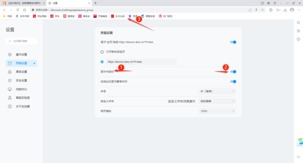 联想浏览器书签栏忽然不见了怎么恢复