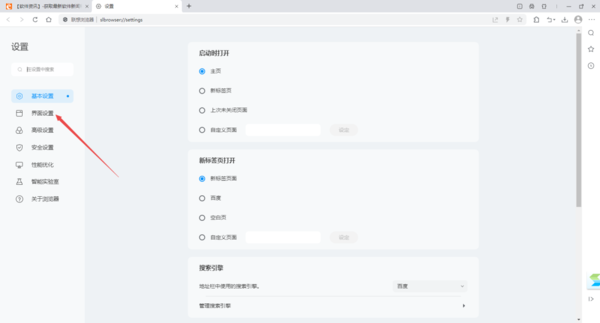 2、接着,在设置界面的左侧列表中,点击【界面设置】选项。