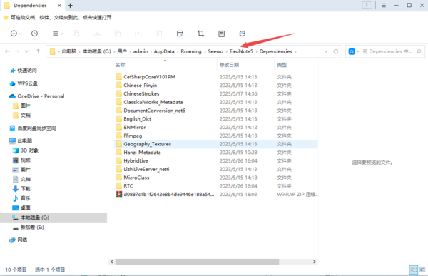 第二步,前往【C:\Users\<你的用户名>\AppData\Roaming\Seewo\EasiNote5\Dependencies】路径中。然后将该文件中所有带有【Cef】字样的文件夹进行删除,包括:【CefSharpCoreV101PM】、【CefSharpCoreV101】、【CefSharpV96】、【ChromeCefCore】、【WpfCefCore】、【WinFormCefCore】。